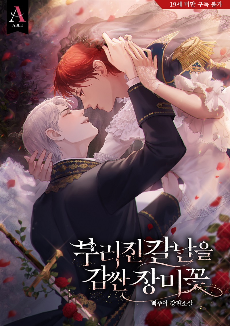 부러진 칼날을 감싼 장미꽃